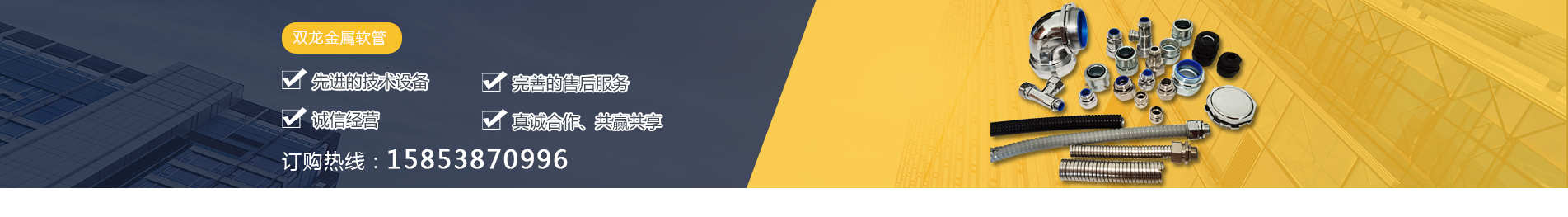 泰安市雙龍線路器材有限公司致力于供應包塑金屬軟管,金屬軟管接頭, 不銹鋼軟管接頭,平包塑軟管的銷售、售后服務于一體的綜合性、現代化 企業(yè)。生產基地 位山東省“一山、一水、一圣人”黃金旅游熱線的中心和泰安市規(guī)劃的工 業(yè)長廊核心位置,工業(yè)發(fā)達,歷史文化悠久,京滬、京福高速公路橫跨我市,交通便利,乘高鐵2-3小時可達北京或上海。